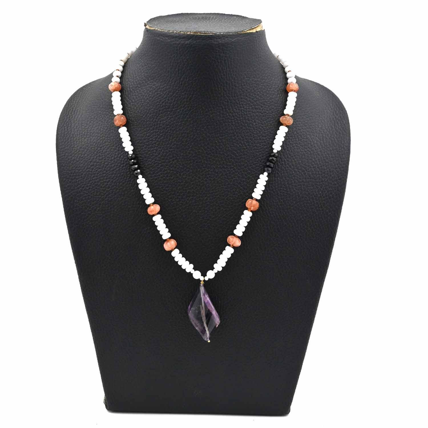 Crystal Gemstone Necklace Natural Gemstone Jewelry Mixed Gemstone Necklace Fancy Shape Gemstones Vibrant Stone Necklace Unique Jewelry Gift