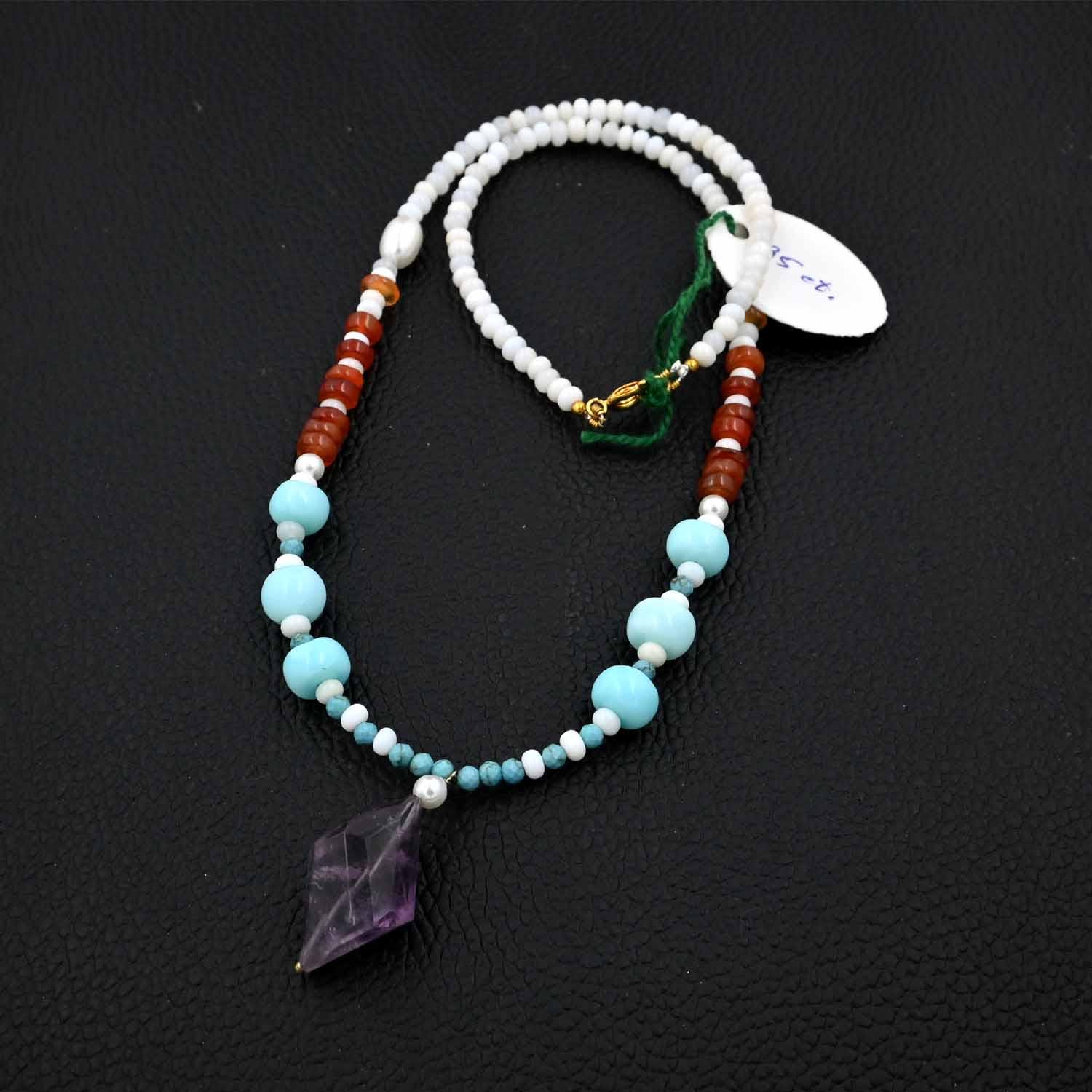 Be the first to review “Elegant White Opal Beads Necklace with Turquoise Round Bead Sunstone Rondelle Beads Necklace Blue Opal Beaded Necklace with Amethyst Pendant”