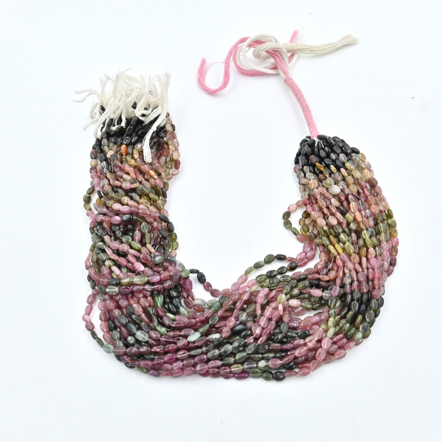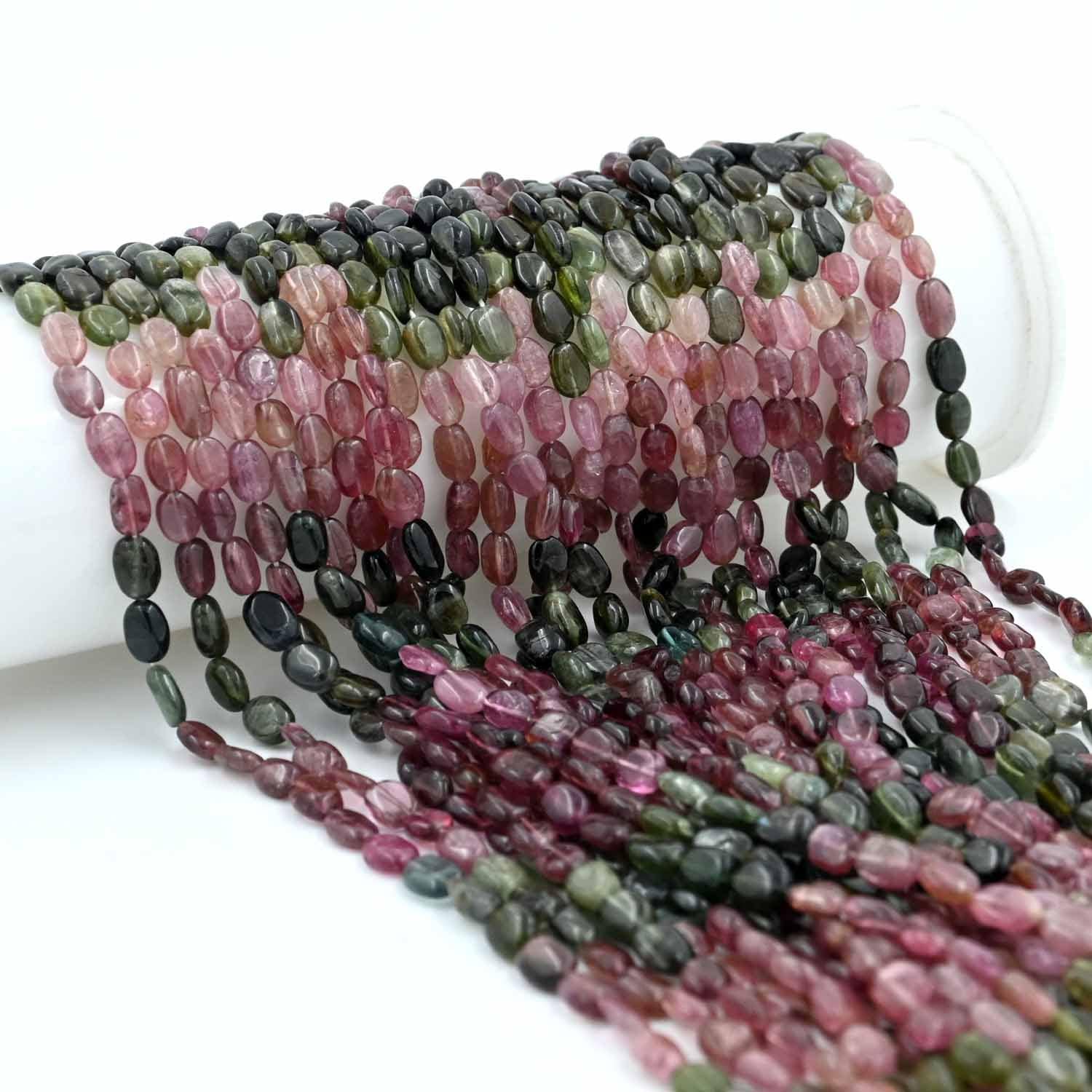 Genuine Multi-Color Tourmaline Oval Beads 4.5×5-4.5×6 MM, Natural Smooth Gemstone Beads for Jewelry Making, 13″ Strand, Handmade Loose Beads
