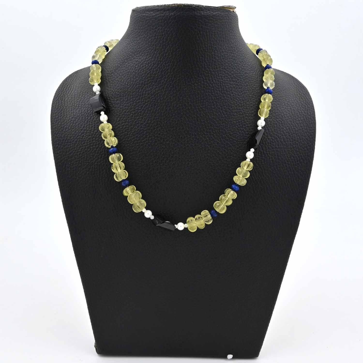 Lemon Quartz Pumpkin Beads Necklace, Fancy Melon Shape Necklace, Lapis Lazuli Beaded Gemstone Necklace, Black Spinel Nugget Bead Jewelry