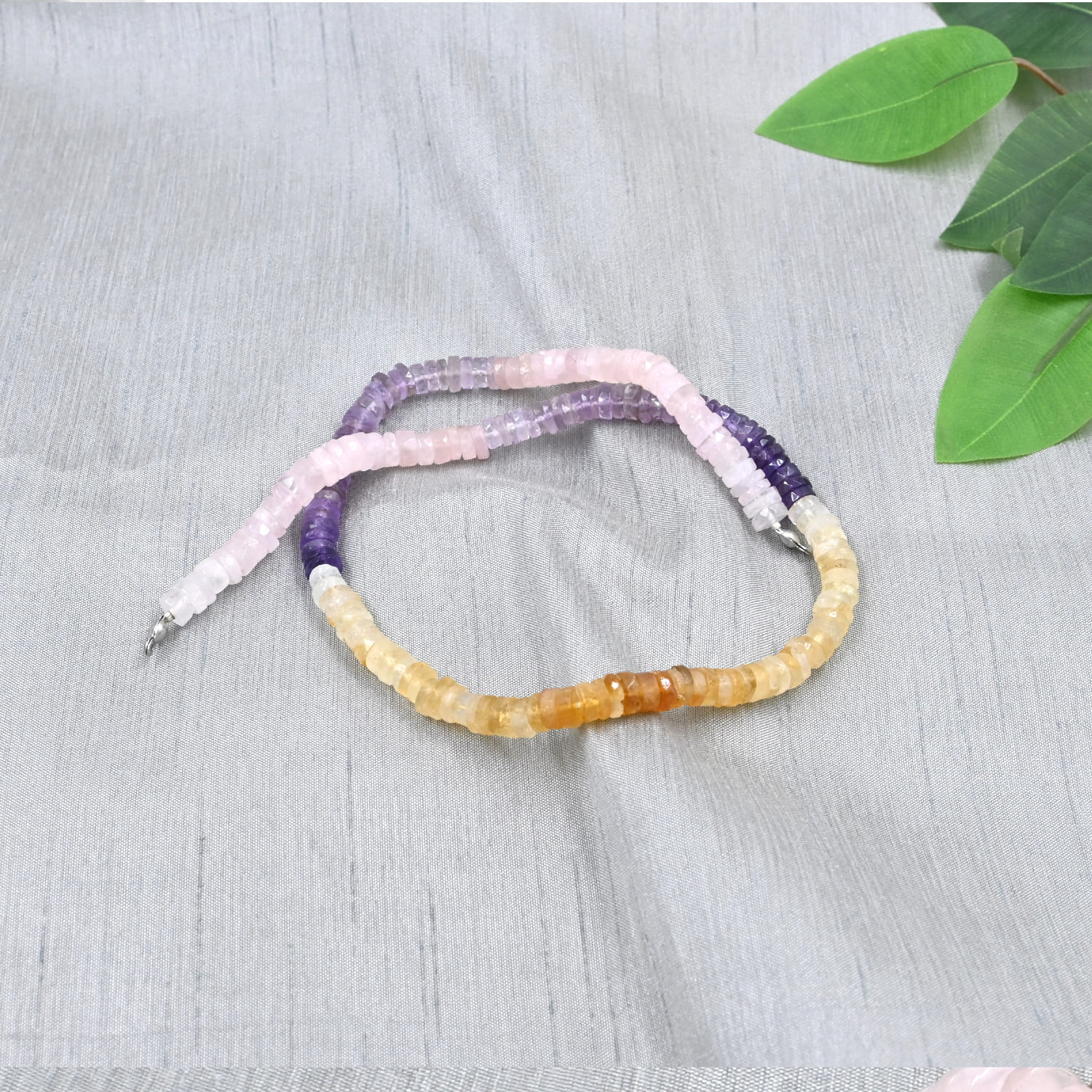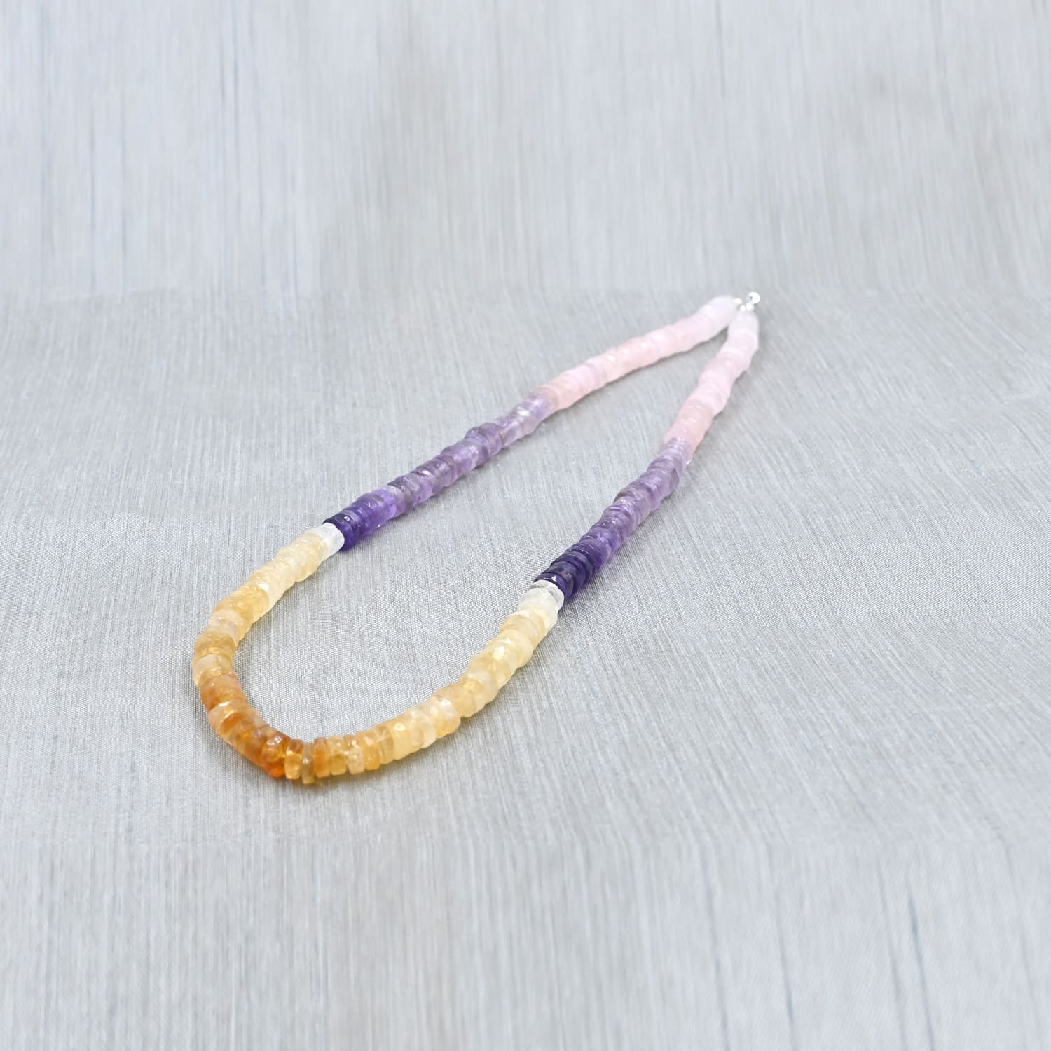 Multi Gemstone Beaded Necklace, Citrine, Amethyst, Rose Quartz 18″