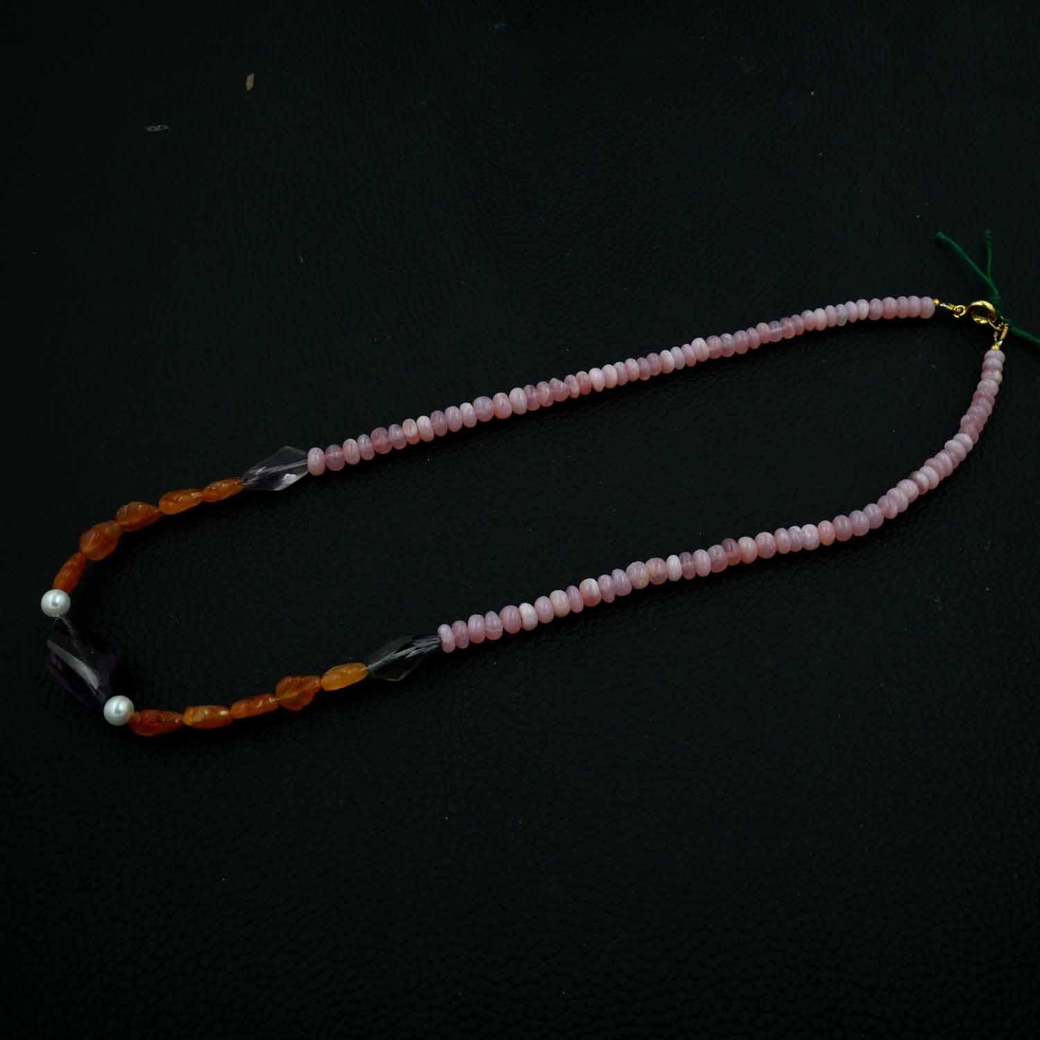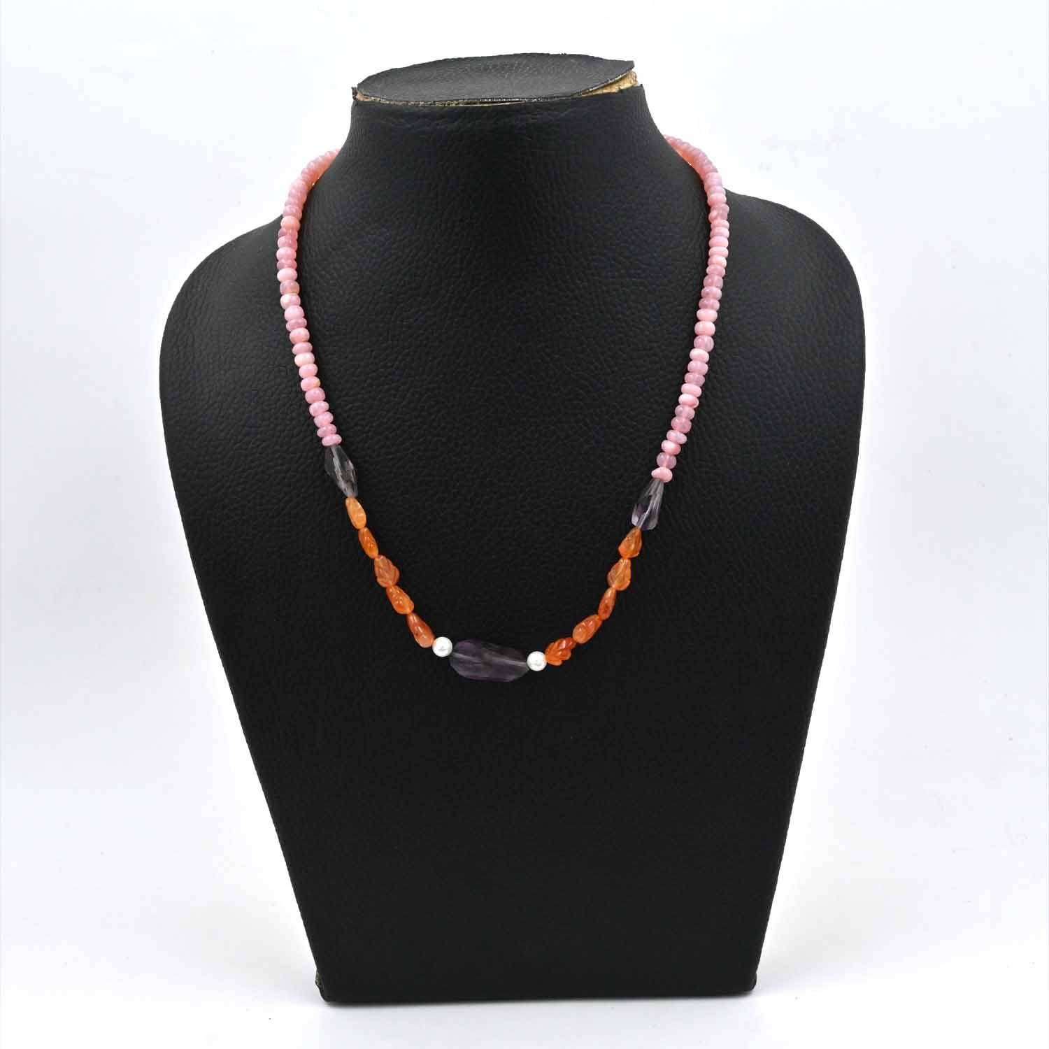 Pink Opal Smooth Beads Necklace, Carnelian Curved Beaded Necklace, Amethyst Nugget Beads Necklace, Fancy Leaf Shape Beaded Jewelry