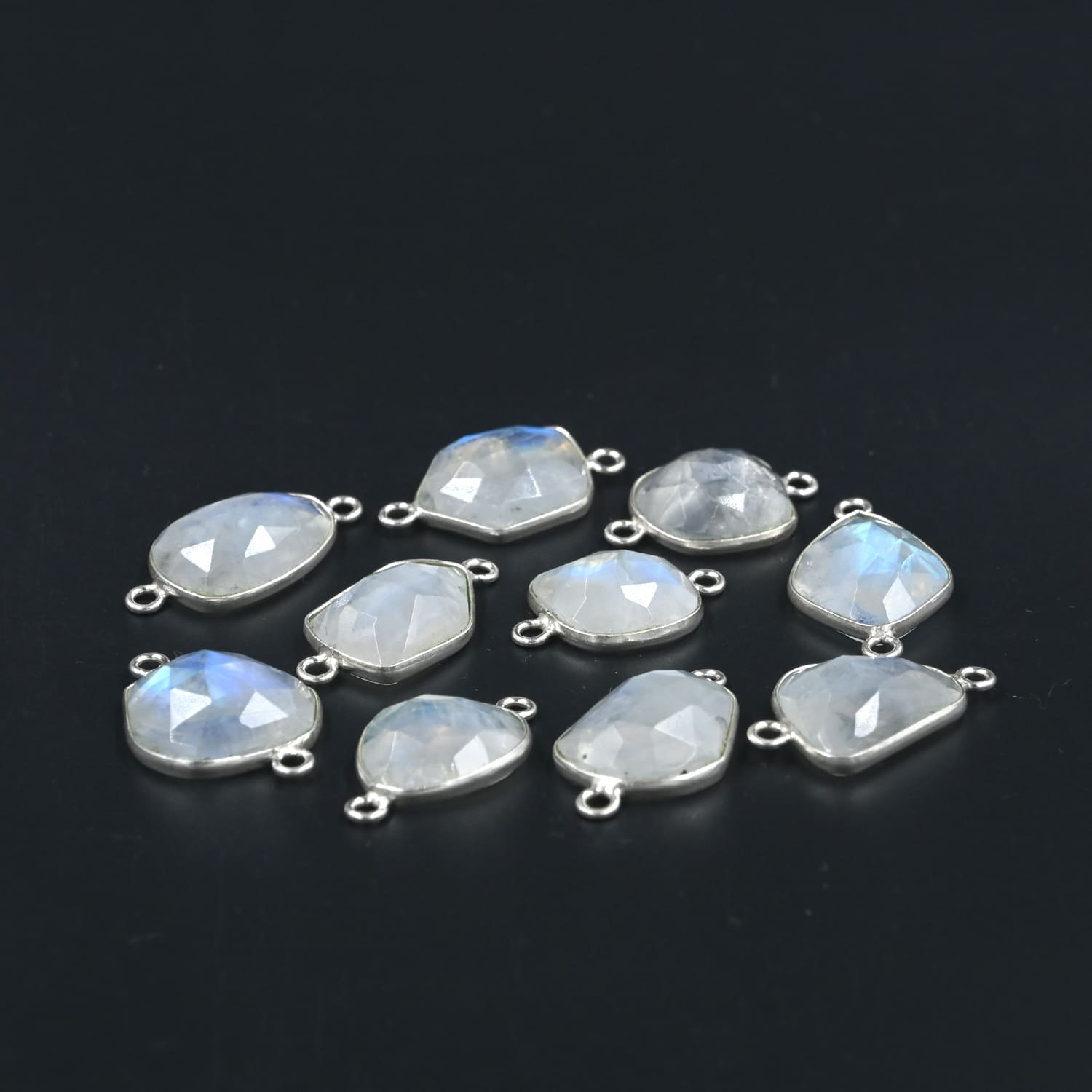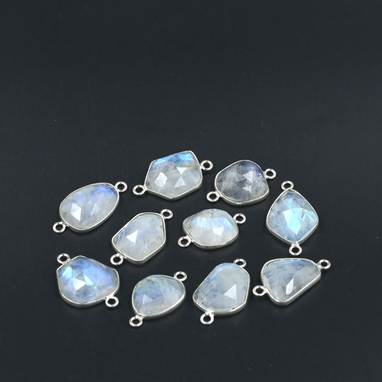 Rainbow Moonstone Rose Cut Bezel Connector 10×12-12x16mm 10pc