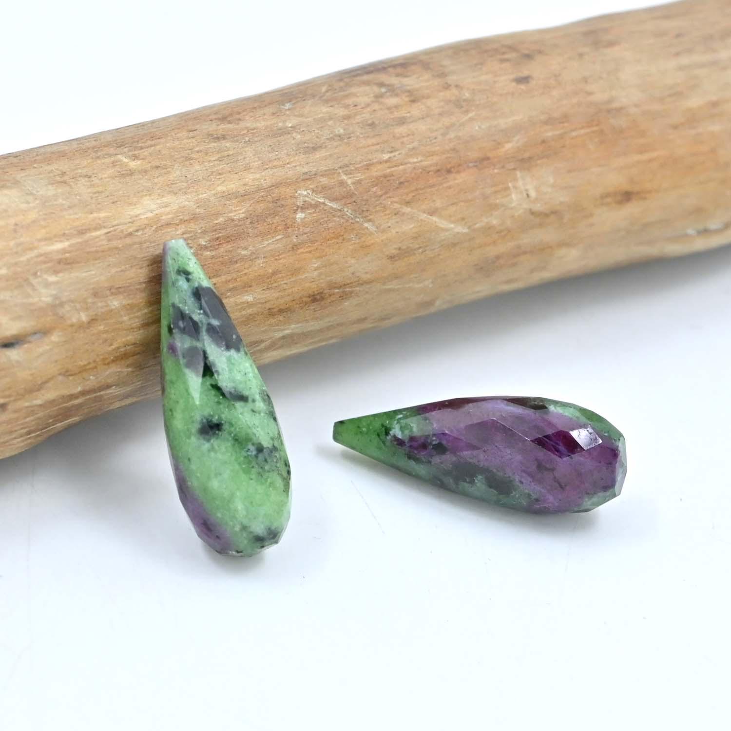 Ruby Zoisite Faceted Drops, Natural Ruby Cylinders For Making Jewelry, Loose gemstone, Handmade Stones, Handcrafted Crystals